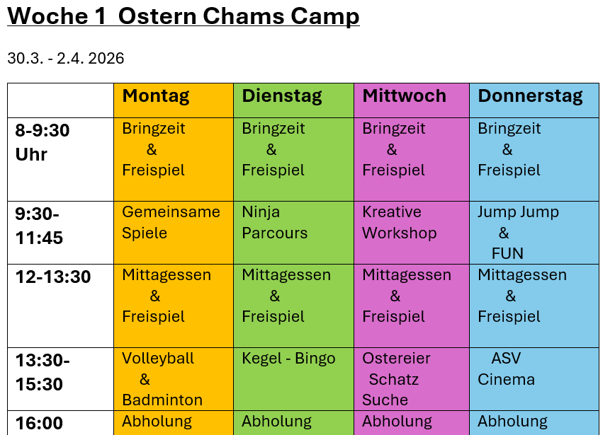 ASV-Ostercamp 2026: Ostern I (30.3.–2. April 2026)